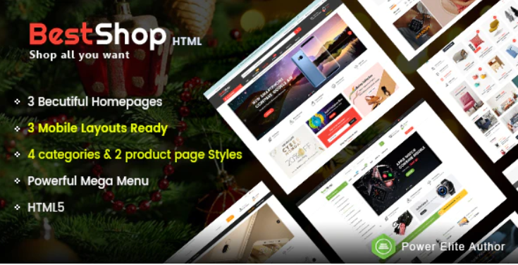 BestShop - Top MultiPurpose HTML Template With Mobile Layouts Template is a compact, top of the line HTML template that offers you the structure on which the rest of your website stands. It is a lightweight piece of code that makes things easier for you when setting up your own website.