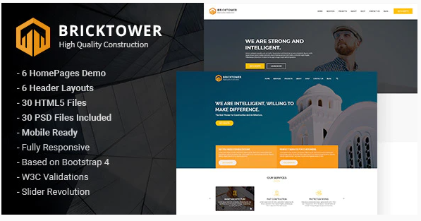 Safe and Robust: Bricktower - Construction and Building Company HTML Template is safe to use. The code is robust enough to handle any kind of exceptional situation that might come it’s the way.