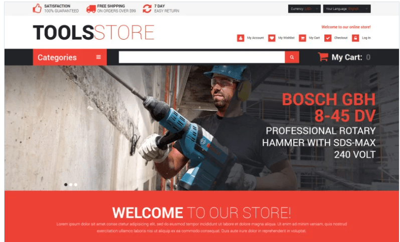 Contractor Tools Magento Theme :- Magento Theme offers you the best way of creating and managing your eCommerce-based website. This magneto theme has an elegant design that is easy to install and update.