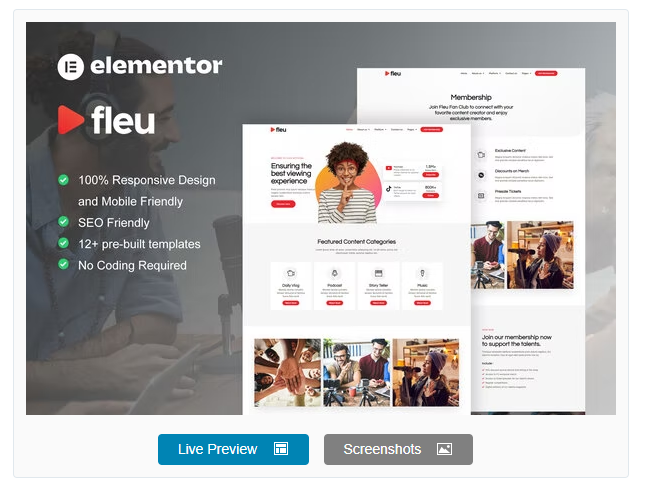 Fleu - Creative Content Creators Elementor Template Kit is developed by (Known and Good Developer)