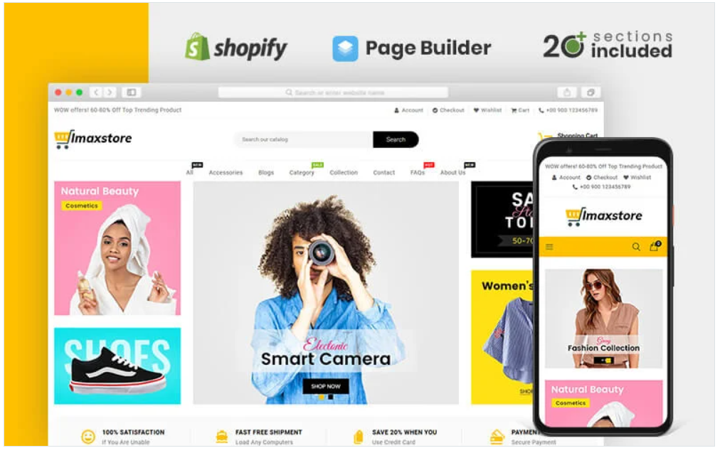Imax Multipurpose Store Shopify Theme is a popular Shopify Theme that allows you to create responsive online store designs in the easiest way possible. This theme has an elegant design that looks great and is quite easy to manage. With Imax Multipurpose Store Shopify Theme Shopify Theme, you won’t have to hire professional assistance for developing your website design, you can take care of that yourself.