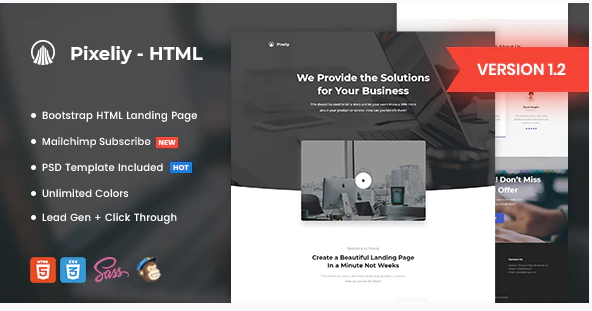 Pixeliy - Business HTML Landing Page Template Features Overview: