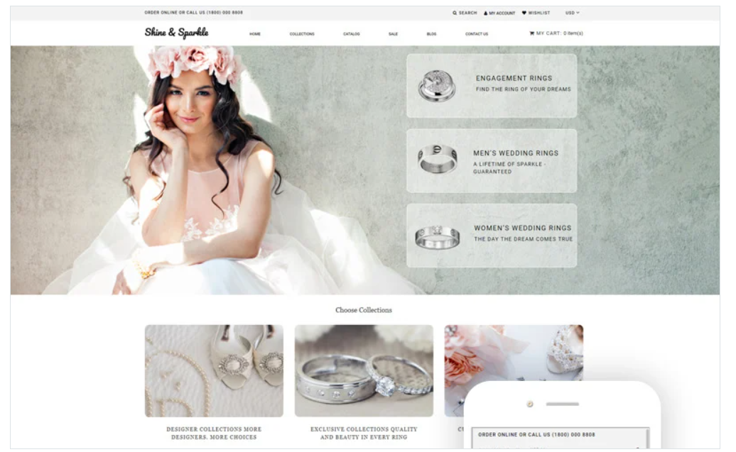 Shine & Sparkle - Jewelry Multipage Stylish Shopify Theme Shopify Theme is a great choice for developing elegant online store UI designs that help your business stand out from a crowd of thousands of similar platforms. This theme makes the process of creating, developing and managing an online store easy for everyone.