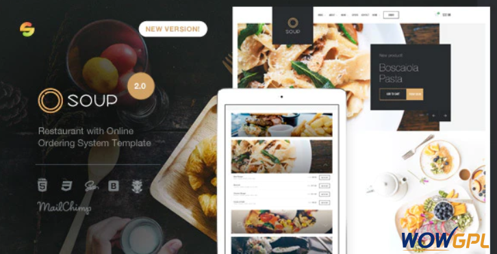 Soup - Restaurant with Online Ordering System Template Template is an elegant ready to use website template that you can use to set up your own unique online platform in a short amount of time. No need to learn the details about HTML and CSS coding, simply just download this theme, customize it as per your preference and you should be good to go.