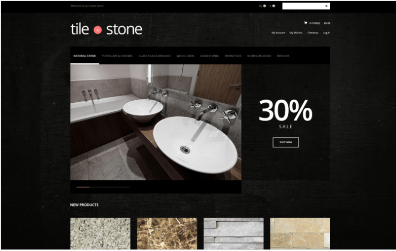 Tile Stone Store Magento Theme Magento theme enables you to create responsive online store UI designs with flexible shopping Cart Features. These features allow you to set up an easy to navigate online store that makes the job easier for you as well as your clients.